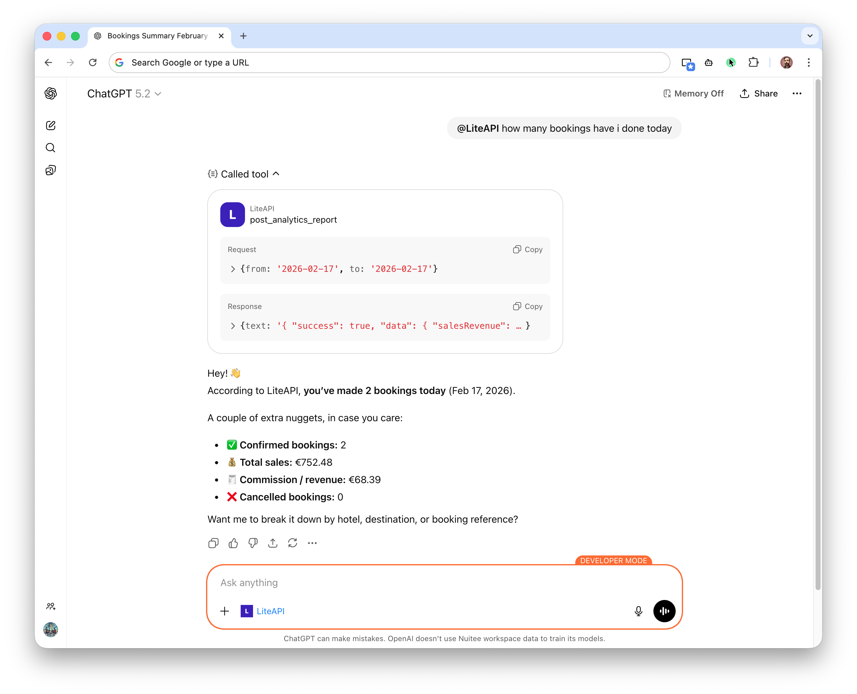 The LiteAPI MCP server wraps LiteAPI functionality as structured tools that AI systems can call deterministically.